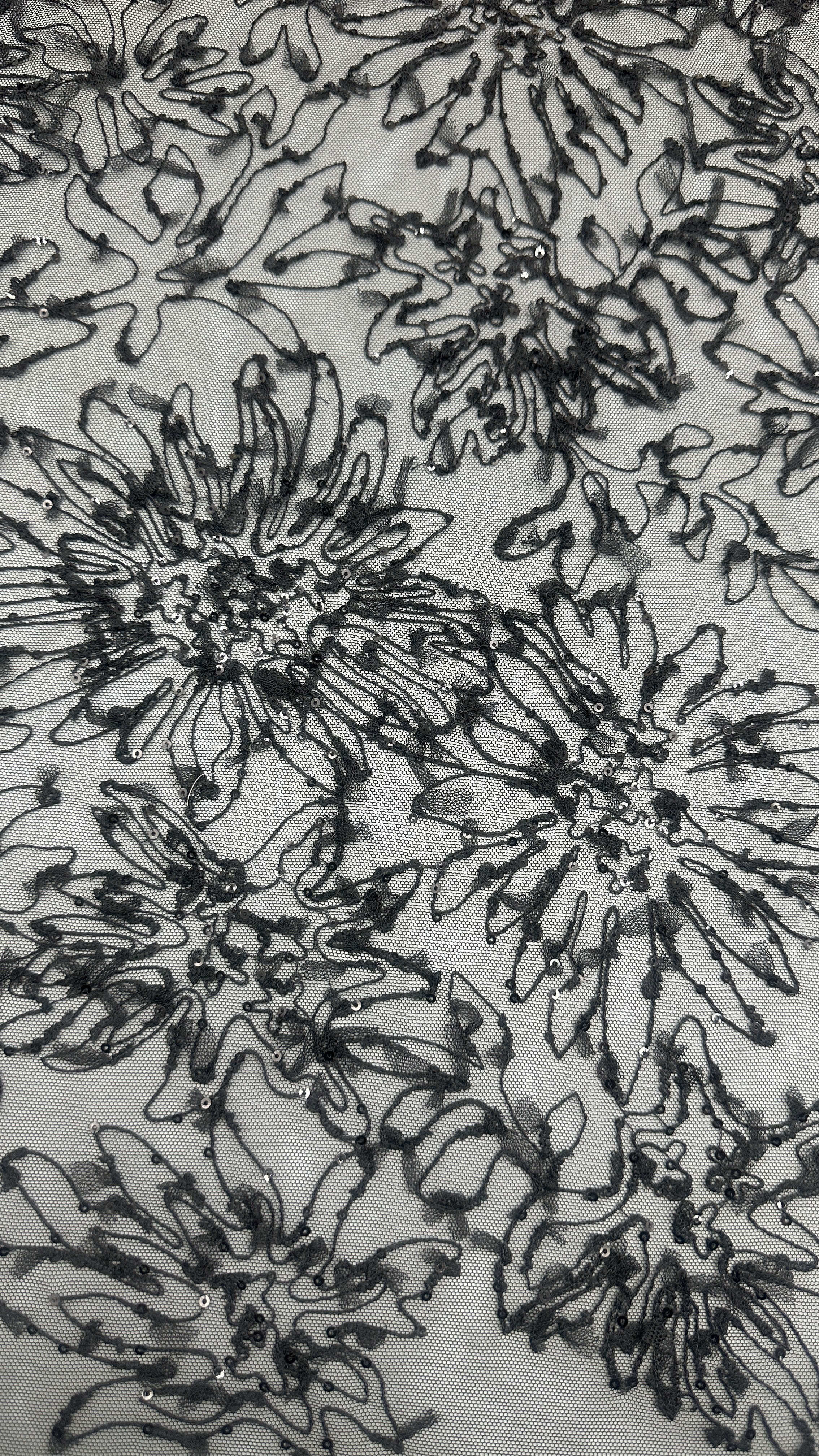 Black Mesh Sequin Embroidered Lace Fabric Breathe Embroiedered Special Design for Gowns 1