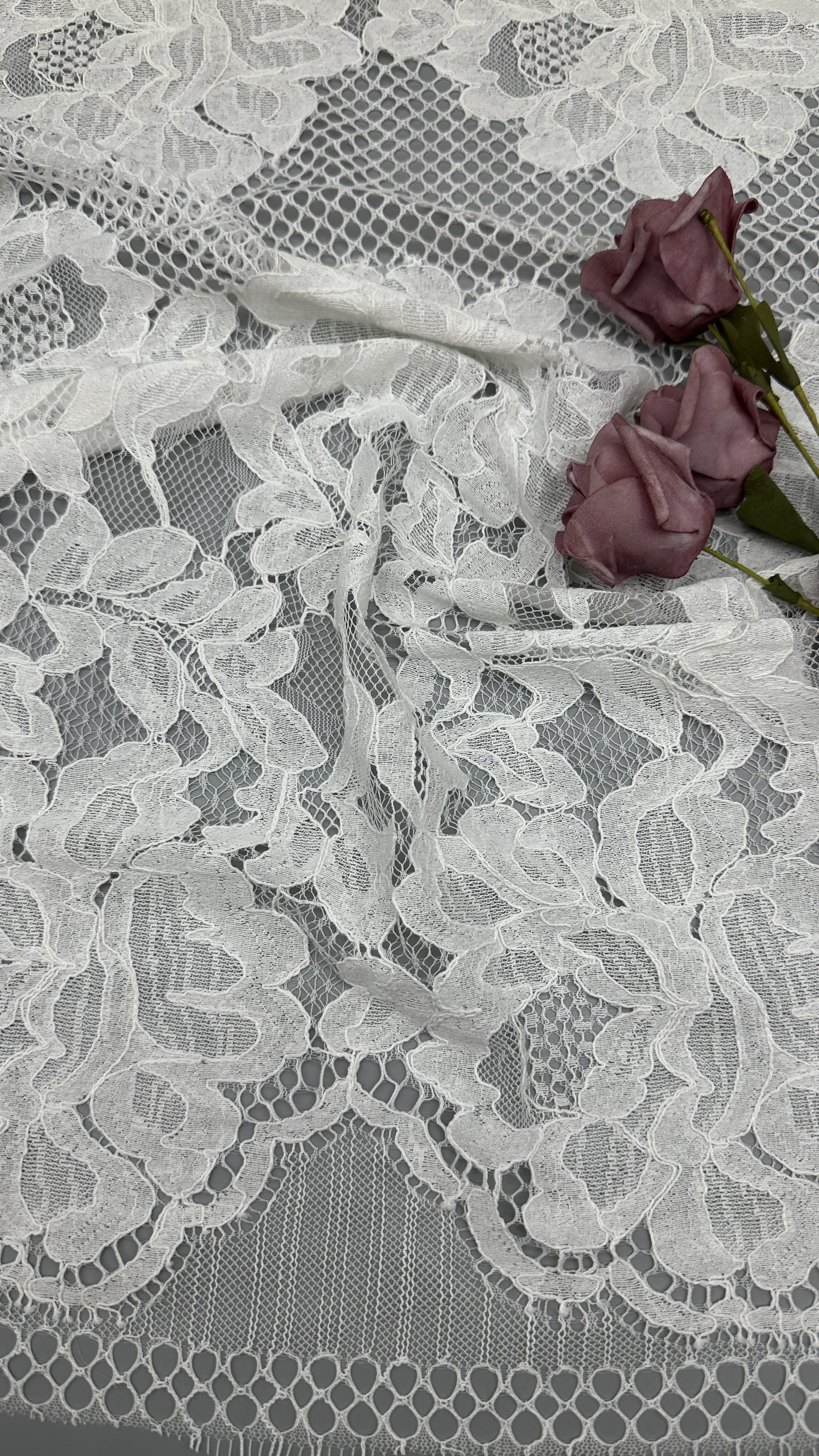 | ハイライト: | French Chantilly lace trim for wedding dresses,custom lace flower mesh fabric,French Chantilly lace dress embellishment |