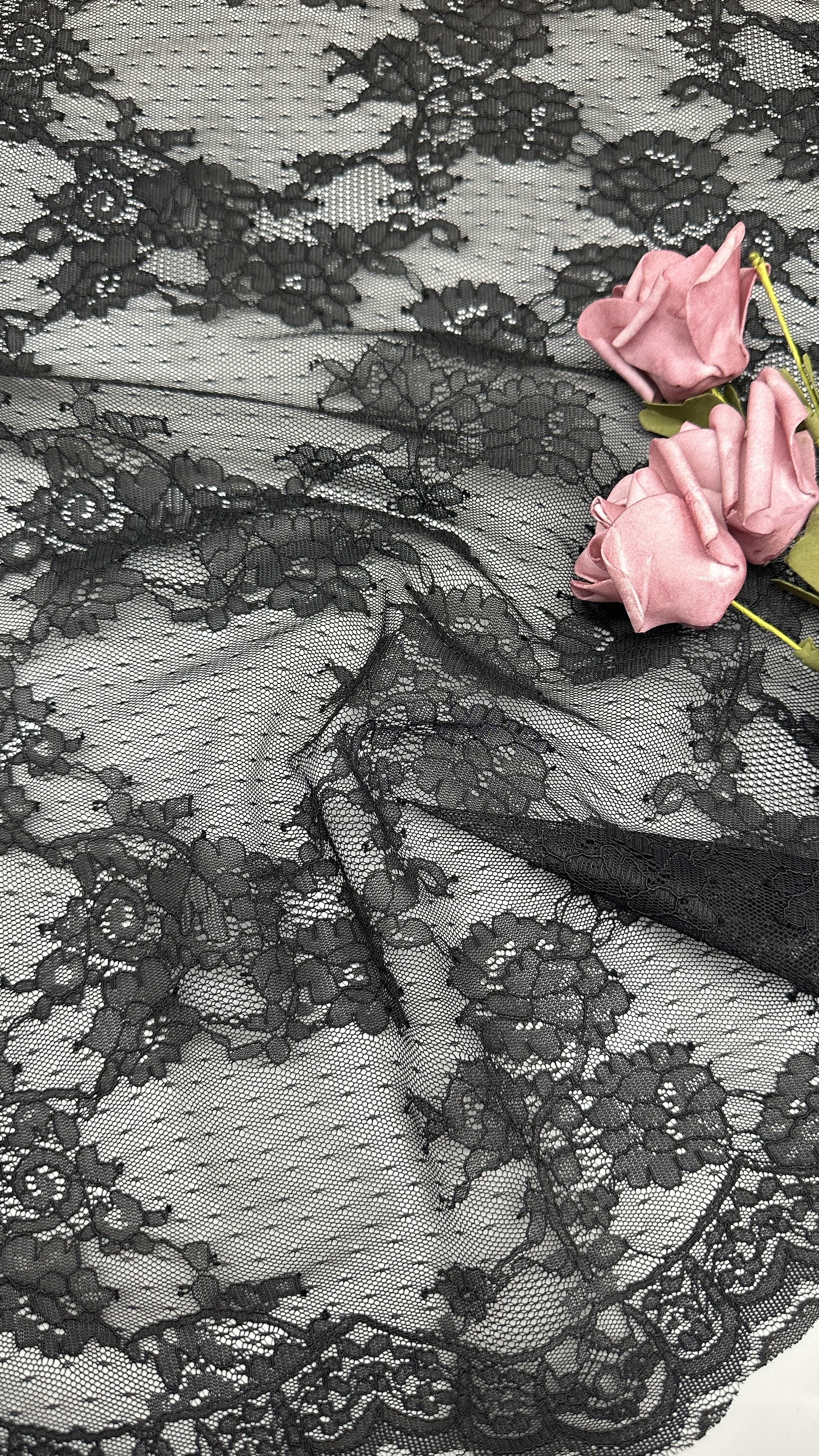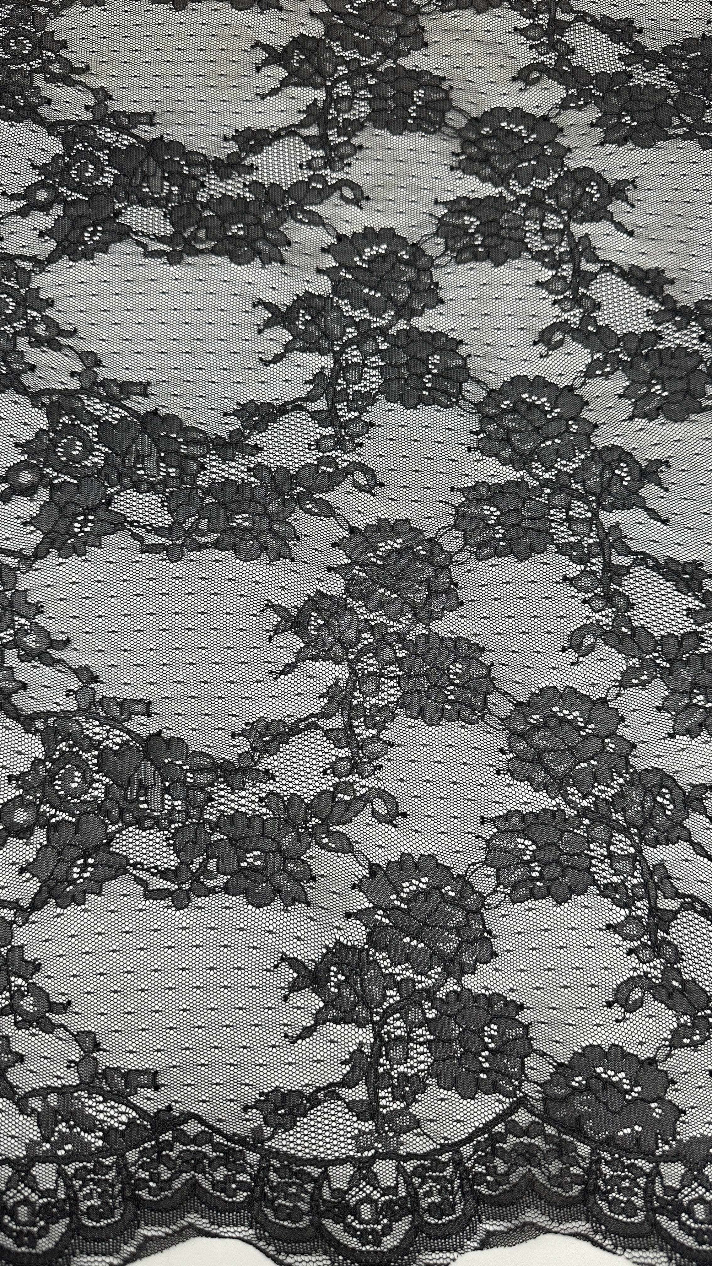 | ハイライト: | Black French Chantilly lace trim,Elegant Chantilly lace for wedding dresses,Guipure lace trim for dresses |