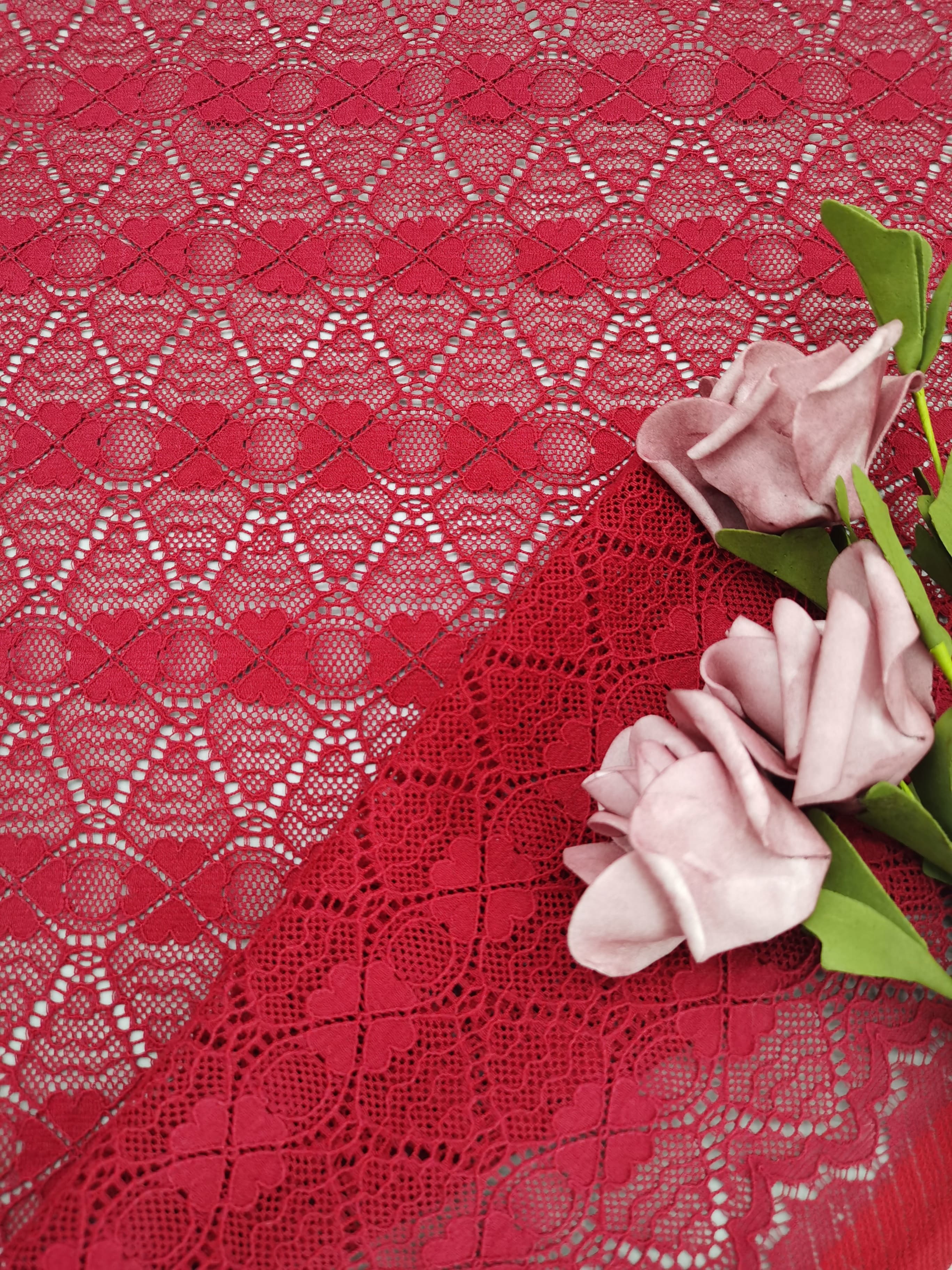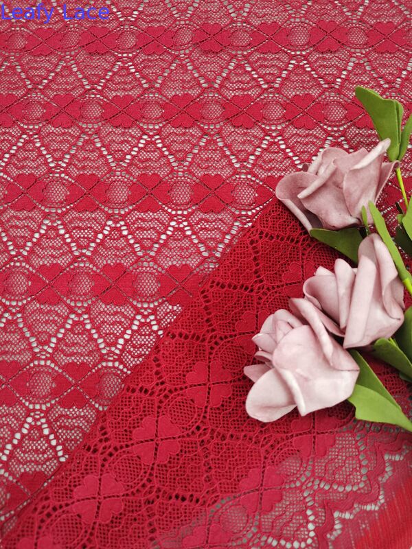| ハイライト: | 赤色4葉クローバーの蕾の織物,カスタムで刺さった純蕾の服,フランス製のシャンティリー蕾のファッション布 |