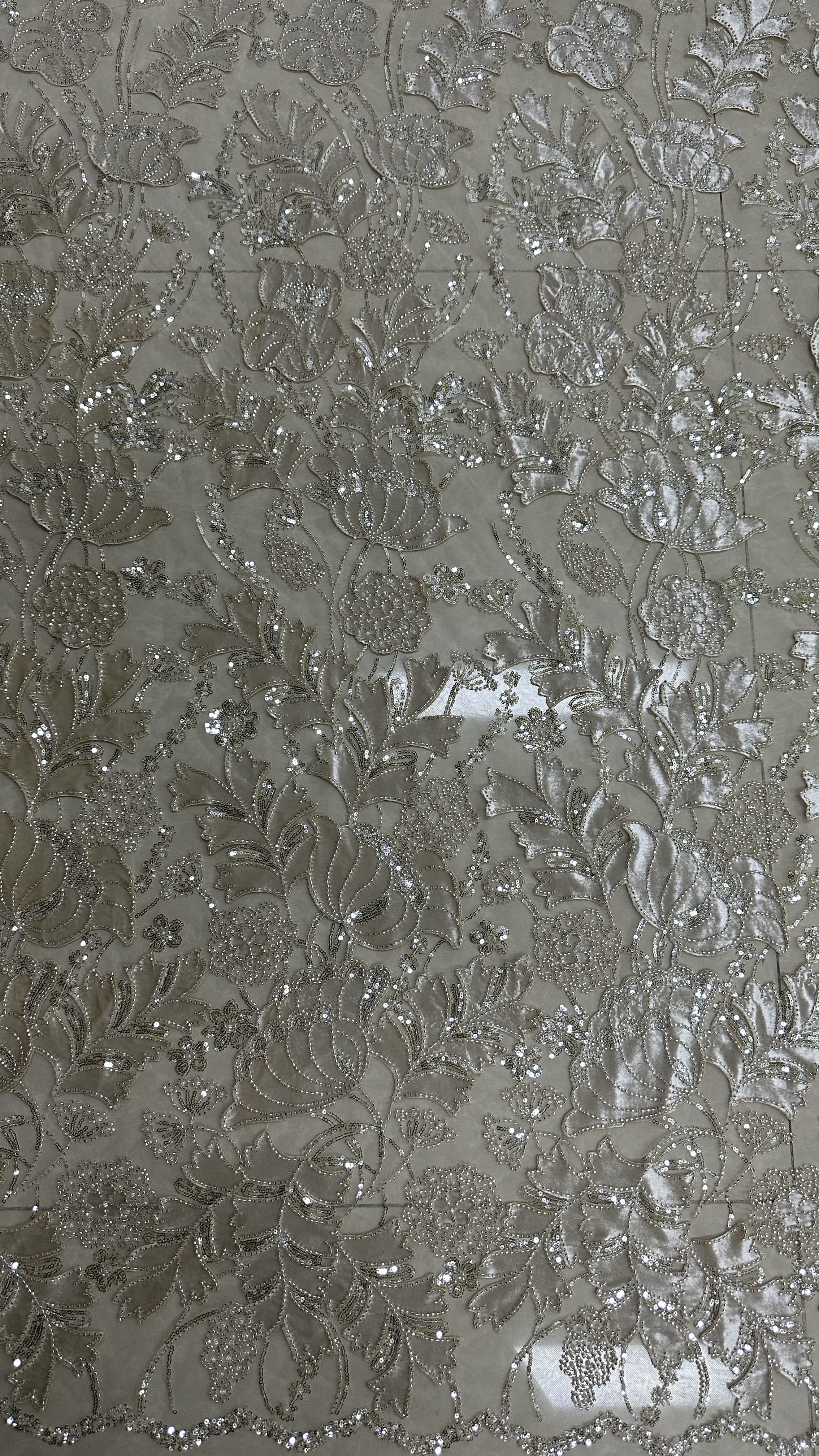 | ハイライト: | sequin lace bridal fabric,3D floral wedding gown fabric,soft embroidered lace for dresses |